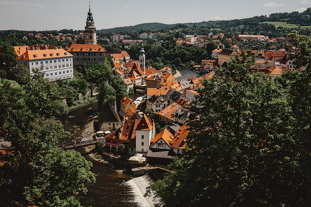 독일의 한 마을의 건축물의 모습을 산 정상에서 바라본 모습이다.